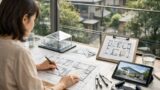 次に大切なのは、一度に細部まで描こうとしないことです。外周ライン、構造体、ガラス面、建具、寸法というようにレイヤーを分けて考えると、手書きでもCADでも整理しやすくなります。さらに、光の入り方や視線の抜け方を意識すると、図面が平面的な線の集まりから、空間の設計図として立ち上がってきます。