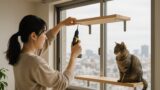 貼り付ける場合は、両面テープよりもマスキングテープで仮止めした上に重ね貼りするのが安全です。マグネット方式は、金属サッシの窓なら取り外しが容易でおすすめ。突っ張り棒タイプは、賃貸物件で壁を傷つけたくない場合に便利です。