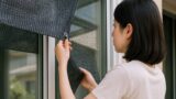 日中の直射日光が差し込む部屋では、室温が上がりエアコンが頻繁に作動します。窓に遮熱フィルムを貼るだけで、冷房負荷を軽減し運転音を下げることができます。併せて、すだれや外付け日よけも有効です。